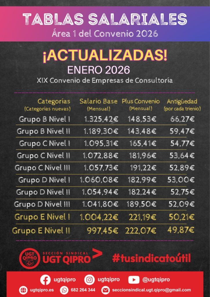 A partir de enero 2026 tenemos un incremento salarial del 3 %. Esto supone unos 35 euros brutos más al mes para personas con categoría EI que ya no tengan mejora voluntaria absorbible.